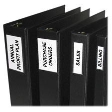 Self-adhesive labels easily identify ring binders while on shelf. Peel off backing and apply labels to binder. Blank white inserts included.