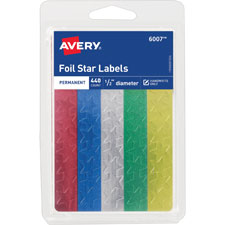 AVE 06007 Foil Star Labels, 1/2", 440/PK, Red/Green/ Gold/Silver/Blue 440 EA/PK 1.18/PK OUT OF STOCK