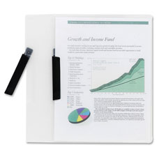 Black swivel clasp on Swing Grip Report Cover holds up to 25 sheets securely. No hole punching needed. Pull out the clasp, insert pages and push clasp into place. Cover lies flat when open. Report cover is made of vinyl.
