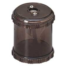 Translucent plastic receptacle for shavings makes this pencil sharpener the perfect addition to any desk. Sharpening unit is lightweight metal with honed steel blade.
