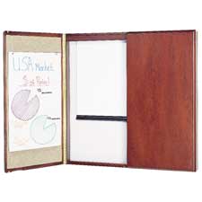 Finished cabinet features a retractable projection screen and ultra-durable, ultra-smooth DuraMax porcelain surface that will not scratch, dent, stain or ghost. Ideal in high-profile, heavy-use conference rooms or personal offices. Crisply convey thoughts on matte white, retractable fiberglass projection screen. Post information on magnetic writing surface and convenient bulletin fabric lining inside cabinet doors. Writing surface is easy to clean. Matched-grain black doors feature radius edges, full-length hinges and magnetic closures. Conference room cabinet includes easy-to-use mounting system and flip chart holders.