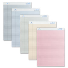 Writing pads offer soft pastels with light gray ruling. Heavyweight, 16 lb. bond paper is microperforated for a clean tear-out every time. The stiff, rigid, 30 point chipboard back offers convenient writing support. Each pad contains 50 sheets. Each sheet is legal/wide-ruled with 11/32" line spaces and a 1-1/4" left margin.