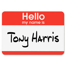 Name badges are ideal for conferences, seminars, meetings or special events. Write on or run through a laser or inkjet printer. Self-adhesive badges adhere firmly and remove easily. Badge labels are designed for most fabrics except vinyl, leather, suede, silk, velvet and corduroy. Each 3.6 mil thick sheet includes two badges with removable adhesive. Each badge has a colored border with the preprinted message, "Hello, my name is" in white.