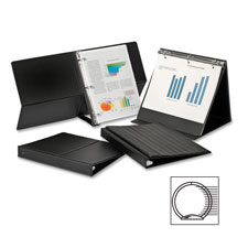 Easel Binder organizes and presents important business information in a professional way. Design features a leatherlike vinyl exterior and a contrasting color inside. Double-booster, round metal rings have a 1" capacity. Easel binder is made with a high percentage of recycled material.