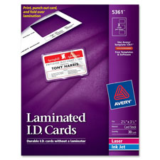 AVE 5361 Laminated Laser/Inkjet ID Cards, 2-1/4"x3-1/2", 30/BX, White 30 EA/BX 18.96/BX OUT OF STOCK