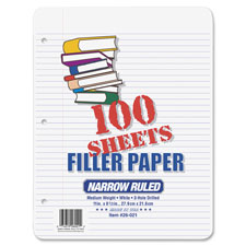 ESS 26021 Filler Paper, Narrow Rule, 15 lb.11"x8-1/2", 100/PK, White 100 SH/PK 3.05/PK OUT OF STOCK