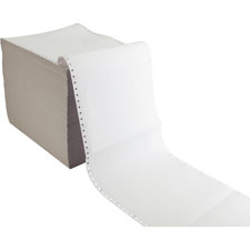 Continuous-form computer paper delivers instant copies with pin-fed printing. Premium, black-image carbonless paper lets you print once for carbonless copies. Quality paper has 1/2" margin perforations and becomes 8-1/2" x 11" once perforations are removed. 15 lb. paper is also perforated between each sheet. Multipart, plain white, computer paper is ideal for computerized reports, forms and letters. Duplicates are in white.