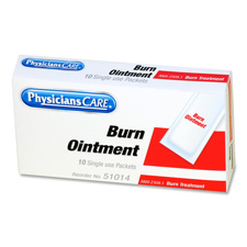 Burn cream soothes painful burns as they begin to heal. Packets of burn cream are packaged for individual use and to replenish first aid kits.