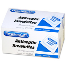 Antiseptic towelettes contain first aid antiseptic to help prevent infection in minor cuts, scrapes and burns. Individually wrapped towelettes with benzalkonium chloride are packaged for individual use and to replenish first aid kits.