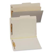 Classification folders make ideal project files because they allow you to create subdivisions of material within one folder. Fasteners on the front and back panels and the dividers create separate filing surfaces. Reinforced self tab is 1/2" high and 2/5 cut right of center. Each 18 point folder expands 2" and offers two 2" prong B-style fasteners in positions 1 and 3. Dividers are made of 18 point manila stock and feature 3/8" high tabs (1/3 cut) and 1" twin prong fasteners on both sides. Divider is fully taped to the gusset.