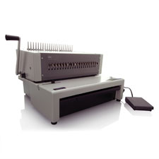 High-volume, electric, comb binding system has both foot-pedal and push-button operation to maximize efficiency. Capacity and durability are ideal for frequent binding users and large offices. The C800pro punches up to 25 pages and binds up to 450 sheets. Adjustable pins punch any size document up to 12" wide. Foot pedal delivers fast, hands-free, electric punch operation. The comb selection gauge is built into base. The C800pro also features adjustable punch depth, an extra-large drawer for punch chips, and solid steel construction for maximum durability.