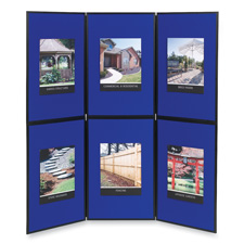 Tabletop display is the easiest, fastest way to display art, graphics, photography, charts and signage. For floor display, remove two lightweight, tri-fold panels from vinyl carrying case, unfold, stack and lock in place. Display sets up in about a minute. Use one tri-fold section as a single tabletop display. Double-sided blue fabric-covered panels accept hook/loop or pushpins for easy attachment of display materials. Ideal for sales reps, presenters, trainers, recruiters. Perfect for trade shows, lobbies, professional offices and schools. Optional header panel for company name, logo or title copy is sold separately.
