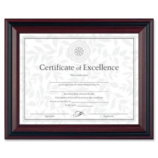 Ridged plastic frame appeals to both contemporary and classic tastes with rosewood and black frame edges. Great for tabletop or wall display. Two-toned frame includes a usable certificate.