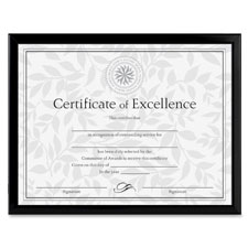 Certificate frame features a U-Channel construction for simple use. Plastic frame comes apart easily and reassembles for quick and easy framing of important awards. Use for desktop or wall display. Included hangers for walls allow vertical and horizontal display. Certificate frame also includes a styrene face and usable certificate.