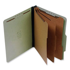 Classification folders feature a 25 point, durable Pressboard covers with strong Tyvek gussets. Metal fasteners inside front and back covers each offer 2" capacity. Three dividers made of sturdy 17 point Kraft stock create five sections. |