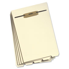 Create as many separate filing surfaces in one folder as needed using these stackable folder dividers. Each divider features a punched hinge at the top that fits over the fastener on the divider beneath it. The bottom divider then fits over the fastener in the file folder. Sections can be removed from the folder without disturbing the order of the papers on the dividers. Hinge is scored for 1/2" expansion. 1/5-cut tabs in assorted positions along the bottom allow quick identification of sections. Handy for personnel, tax, or legal files, or anytime you need extensive categorization within a single file folder. Use with end-tab or top-tab folders. Dividers are made of 11 point manila stock and offer reinforced, standard 2-3/4" slit punching and 2" prong, B-style fastener at top.