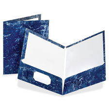 Letter-size portfolios feature an elegant marble design in high-gloss, laminated cover stock. Stock is acid-free. Left inside pocket has die-cut, business card holder. Generous twin pockets hold up to 100 sheets of letter-size paper and resist tearing.
