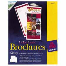 Heavyweight glossy white paper is coated for sharp text and brilliant colors. Scored for easy folding. Includes mailing seals. Designed for use in color laser printers. Avery offers many easy-to-use templates for Microsoft Word and other popular software programs.