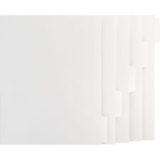 Economical, high-quality dividers with white tabs are designed for use in Xerox Docutech, 4135 and other single reverse-collated, tab-enabled printers. Dividers are single-reverse collated and feature an unpunched edge for use with any binding system. Each set contains five tabs.