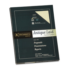 Antique Laid Business Paper offers 25 percent cotton fiber and a classic laid pattern. Use for letterheads, correspondence, presentations, and reports where a distinctive look and rich, crisp feel is important. Watermarked, acid-free paper is compatible with copiers, laser printers and inkjet printers. 24 lb.