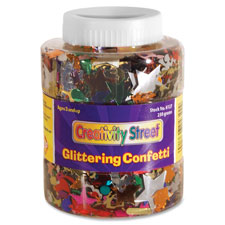 Convenient twist top shaker jar holds 8.8 oz. or 250 grams of a Glittering Confetti assortment. Jar offers convenient storage and makes confetti easy to use.