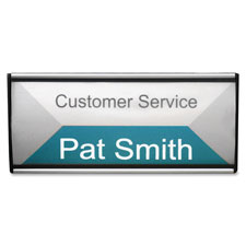 Identify your cubicle with the People Pointer Wall/Door Sign. Transparent plastic cover protects nameplate from wear and tear. Customize your nameplate with easy-to-use templates that print on laser and inkjet printers. Wall/Door Sign features a lightweight aluminum base. Includes two panel wall hooks and wall-mounting hardware.