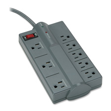 Economical surge protection for home or office equipment protects electric appliances from damaging power surges and spikes. This eight-outlet brick offers a right-angle plug, 882 joules, 330 volts and 6' power cord.
