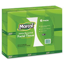 Recycled, two-ply tissues come in a decorative cube box that fits perfectly in work areas with limited space. Soft white, facial tissue is hypoallergenic. Each tissue contains a high percentage of recycled material.