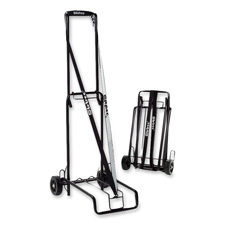 Deluxe travel cart is ideal for transporting items from office to airport. Elastic safety cord with wide expansion secures larger loads. Open with locking brace to transport items weighing up to 125 lb. Travel cart features comfort grip handles, a large 10" x 13" platform and 4" wheels to balance bulky loads. Travel cart has a steel frame and weighs 6 lb.