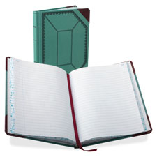 Boorum & Pease 37 3/8 Series Account Book features a blue canvas cover with sturdy red corners for extra durability. Inks are waterproof and permanent. Includes a table of contents page and place-marking ribbon. Contains 150 pages.