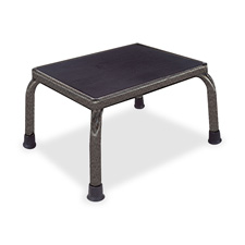 Footstool features an anti-skid, treaded step that measures 14" x 11". Durable steel construction has a powder-coat finish. Heavy-duty steel tubular legs have safety tips.