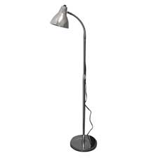 Durable, functional lamp features a height-adjustable rod with gooseneck arm and chrome reflector. Height-adjustable, plated steel rod includes a 12" long gooseneck arm and adjusts lamp from 30" to 58-1/2" high. Stationary, heavy-plated steel base is weighted for a secure footing. Design also features inner and outer shade and a three-prong, grounded plug. Lamp uses 60-watt bulb (sold separately). UL listed.