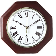 ILC 67207010 Wall Clock, 12" Octagon Shape, White Face/Mahogany Frame