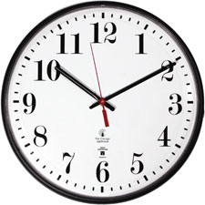 Atomic wall clock is radio-controlled so the setting is modified each day to that of the atomic clock, accurate to one second per million years. The clock automatically adjusts to Daylight Saving Time. Wall clock includes hanging hardware and runs on one AA battery (sold separately). Clock body is made with recycled material and is biodegradable.