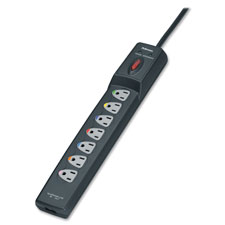 Power Guard Surge Protector with seven outlets delivers phone and DSL protection to protect your electronics from harmful surges. Color-coded faces offer quick, easy outlet management and setup. Design includes 1600 joules, EMI/RFI noise filtering, illuminated on/off switch with 15-amp circuit breaker, LED indicator lights, and catastrophic fuse. Surge protector has a 12' cord and 6' phone cord. UL and cUL approved.
