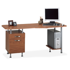 Espresso PC Desk Workstation is designed to support flat panel displays. Wide worksurface accommodates a keyboard and mouse. Workstation includes a pedestal with box/file configuration and additional shelf for CPU or storage. CPU shelf is floor-supported. All surfaces have seamless, contoured edges. Workstation features a powder-coated, tubular steel frame with thermofoil laminate surfaces.