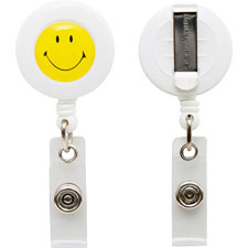 ID Card Reel with belt clip adds a smile to your day. Reel is decorated with a smiley face. Card reel extends 24".