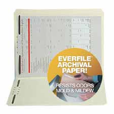 Preserve your information today and in the future. EverFile paper is a unique stock developed especially for the long-term preservation of your important documents. Each folder with fastener is acid-free and lignin-free and remains chemically stable for 50 years or more. Won't cause your stored documents to age and become brittle. File folder is also treated with an antimicrobial coating to resist mold, mildew and associated odors. Meets PAT standards recommended for storage of photographic paper or film. Folder has straight tab and contains two 2" fasteners in positions 1 and 3.