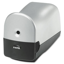 Electric pencil sharpener features heavy-duty motor with auto reset to prevent burnout. Contemporary design features Pencil Saver to prevent oversharpening.
