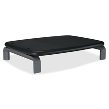 Monitor stand with the SmartFit System lets you set the monitor height to match your personal comfort by snapping one or two risers into place. As a part of the SmartFit System, the monitor stand offers a simple setup that maximizes the ergonomic benefit for improved comfort. Height adjusts to one of three vertical settings without tools. The stand positions the monitor in line with your eyes, helping to reduce eye and neck strain. Keyboard or supplies store under the stand to save desk space. Monitor stand supports any monitor up to 17" and 40 lb.