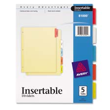 AVE 81000 Insertable Dividers, 3-HP, 5 Tab, 8-1/2"x11", Multi-Color 5 EA/ST 0.68/ST OUT OF STOCK
