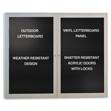 Keep your announcement or listing secure behind acrylic, shatter-resistant hinged doors that come equipped with built-in disc tumbler locks. Letter panel has a precision grooves for easy letter insertion for a long-lasting background for your messages. Interior case depth is 1-5/16". Letterboard includes two keys, a built-in mounting system and set of vinyl 3/4" letters, numbers and characters. For outdoor usage, enclosed board has a weather-resistant backing and durable satin aluminum framing. Water-resistant design is perfect for outdoor placement under an awning or overhang. Letterboard is ventilated to prevent moisture buildup inside.