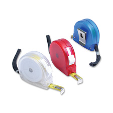 Retractable tape measure is ideal for anyone taking measurements. Colorful ribbon-style tape, marked in both inches and centimeters, is a perfect craft accessory.