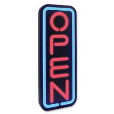 Lighted "Open" Sign features tough polymer lens that will not break like neon glass tubes. Construction is durable enough to withstand frequent window washing. Sign uses up to 50 percent less electricity and plugs into any standard outlet with no special wiring required. Superbright LED technology lasts up to five times longer. 5" lettering runs vertically.
