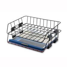Wire Desk Tray is part of a line of black wire desk accessories. Desk tray can be stacked up to six high to organize documents, files and workflow. Quality construction has smooth edges and an appealing, powder-coat paint finish.