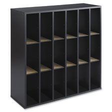 Sturdy Mail Sorter is made of 5/8" compressed wood with adjustable hardboard dividers that form separate compartments. Large sorting slots accommodate oversized envelopes. Durable laminate finish will complement any setting. Black plastic molding provides an eye-catching accent to the finish while providing a place for the included labels. Stack up to two high to increase sorting capability. Solid fiberboard back provides stability.