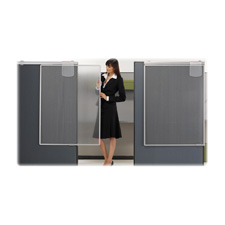 Lightweight, translucent plastic screen glides open and close to provide a private space in a cubicle environment. Mount the screen to standard-sized 65" high cubicles that are 1-1/4" to 3-1/4" thick. Privacy screen includes nameplate and dry-erase board for messages. Privacy screen is made of translucent plastic panels and a silver aluminum frame.