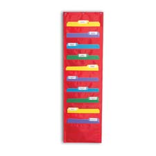 Storage Pocket Chart includes ten 13-1/2" x 7" fabric pockets. Pocket chart offers durable construction with sturdy grommets for easy hanging.