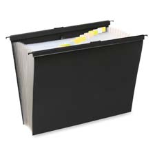Slide-Bar Expanding File offers a lightweight and organized way to carry papers in its 13 tabbed pockets. Slide easily into backpacks, lockers and file drawers. Use retractable hooks to hang in your file cabinet. Design with durable poly and reinforced gussets makes the expanding file reusable time after time.