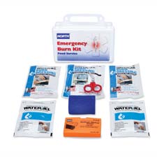 Emergency Burn Kit meets the needs of common injuries in commercial kitchens, restaurants and fast food establishments. Kit includes burn dressing, Water-Jel, medical gloves and scissors. Kit comes in an all-metal case.
